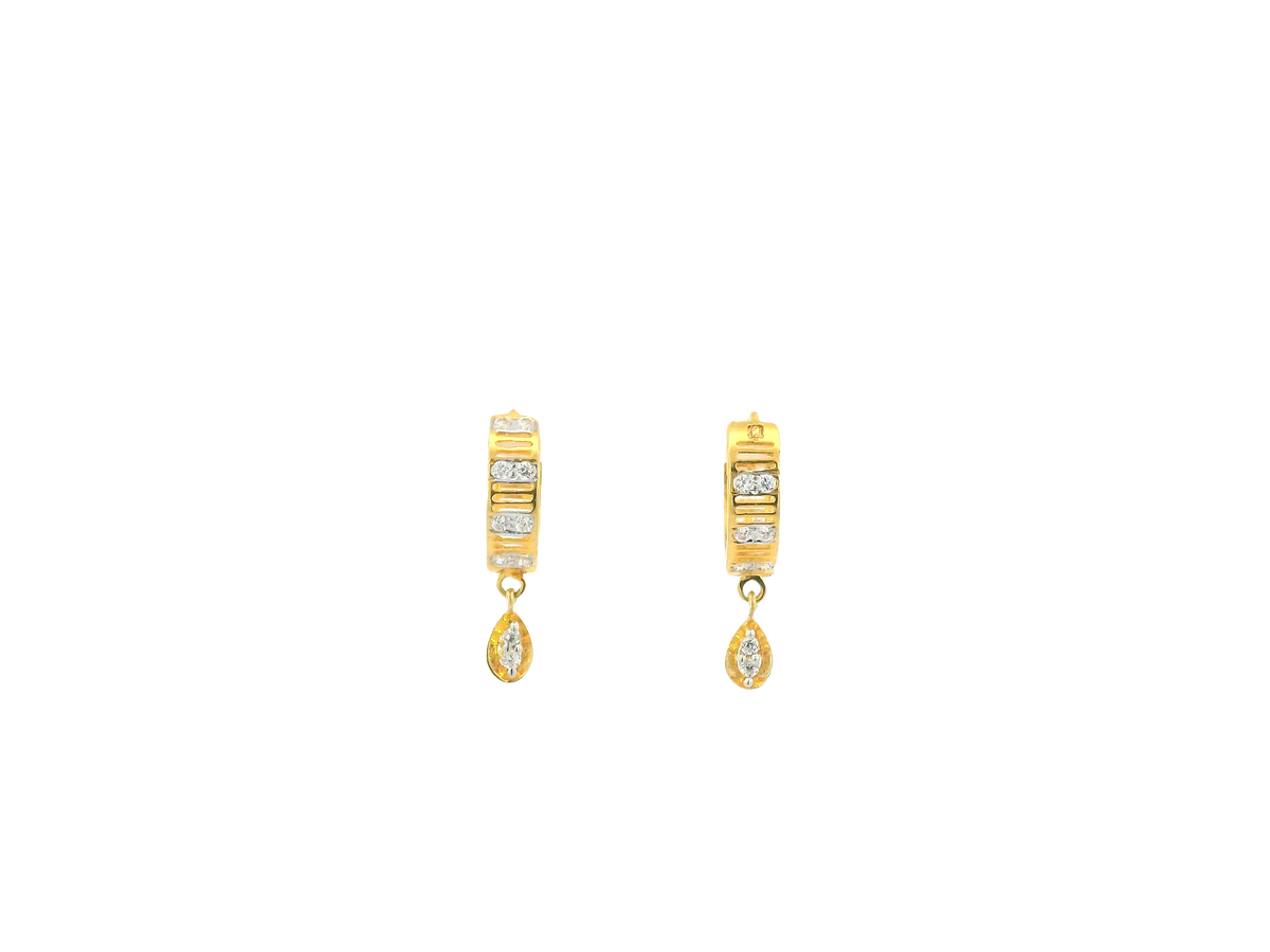 Gold Purity: 18KGold Weight: 1.9 gramsFinish: Polished Yellow GoldEarring Style: HoopStone: Cubic Zirconia