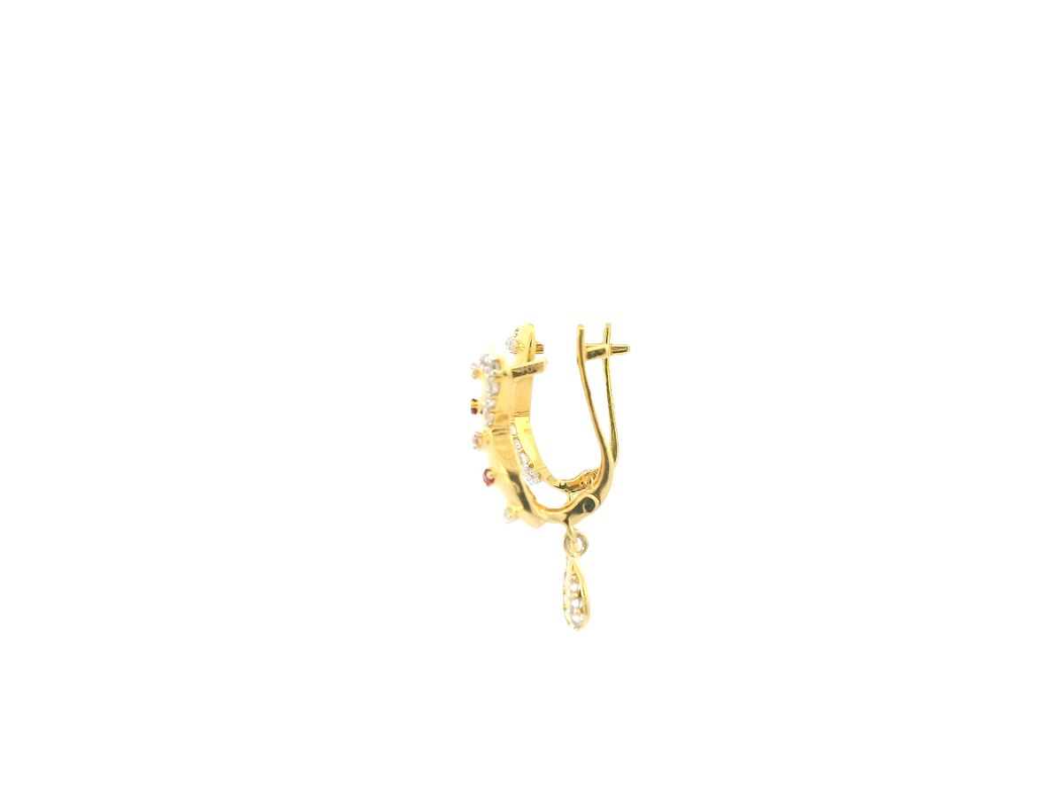 Description: Crafted in radiant 18K yellow gold, these hoop earrings feature a polished finish and are adorned with brilliant cubic zirconia stones. Weighing 3.2 grams, they offer a bold yet refined look that makes a statement without compromising on comfort. Ideal for both festive occasions and upscale daily wear, these earrings bring timeless elegance with a contemporary shimmer.