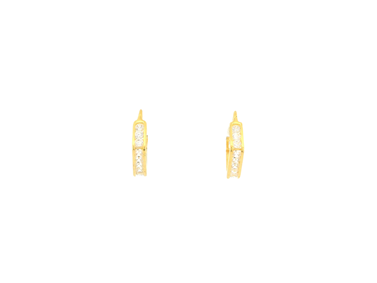 Description: These graceful hoop earrings are crafted in polished 18K yellow gold and adorned with sparkling cubic zirconia stones. Weighing just 1.4 grams, they are perfect for everyday elegance while offering a hint of shimmer. The sleek hoop design ensures a timeless appeal, making them an effortless addition to any jewelry collection.