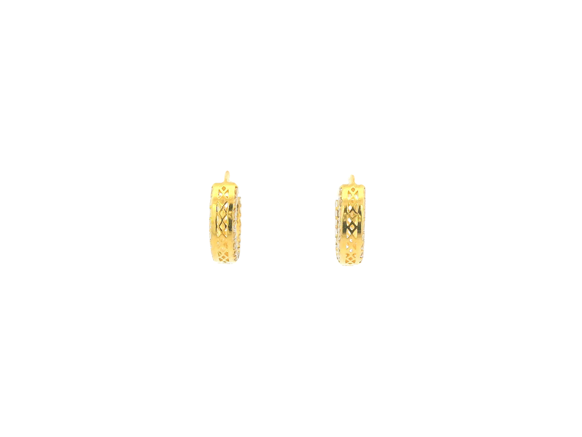 Description: These elegant 18K Yellow Gold Hoop Earrings are designed to make a subtle yet sophisticated statement. With a polished finish and sparkling cubic zirconia accents, the 2.3-gram weight offers a refined balance of boldness and comfort. Ideal for day-to-night wear, these hoops embody modern elegance with timeless charm.