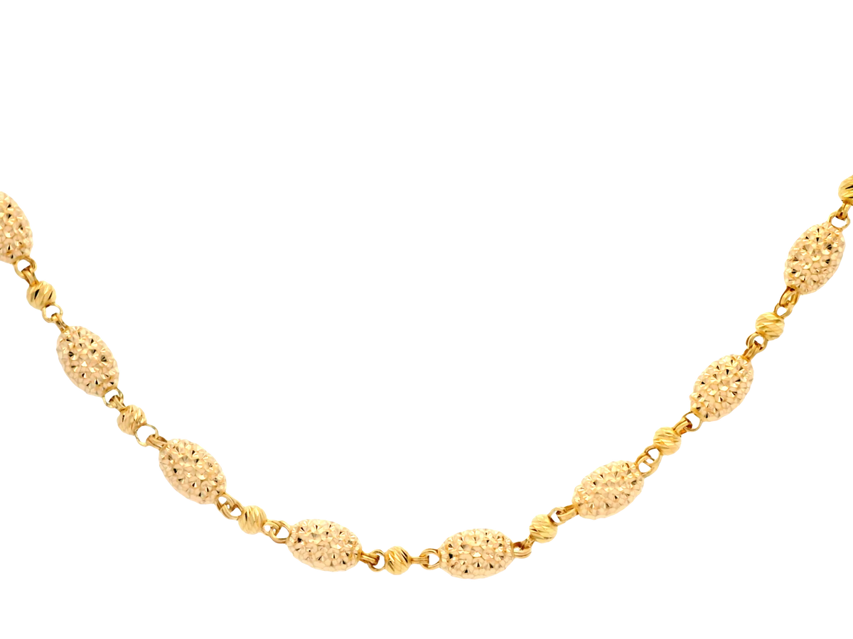 Description:This elegant 22K yellow gold chain features a polished finish that reflects a warm and luxurious shine. Designed for both everyday wear and special occasions, its 15.6g weight offers a refined presence without being overly heavy. The secure lobster lock provides durability and ease of wear. Perfect worn alone for a clean, classic look — or paired with a pendant for added style.