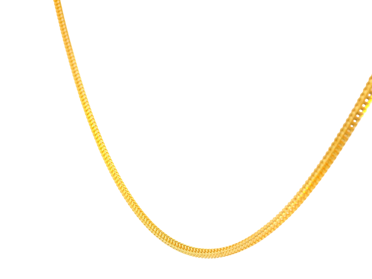 Description: This 22K Yellow Gold Chain offers a bold yet refined look, perfect for everyday luxury or special occasions. Weighing 13.9 grams and measuring 18 inches in length, it features a lustrous polished yellow gold finish and a secure lobster lock for reliable wear. Its classic style and mid-length design make it an excellent standalone piece or a strong base for pairing with pendants.