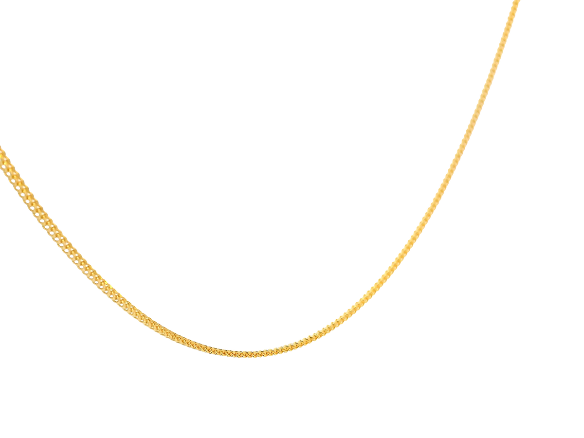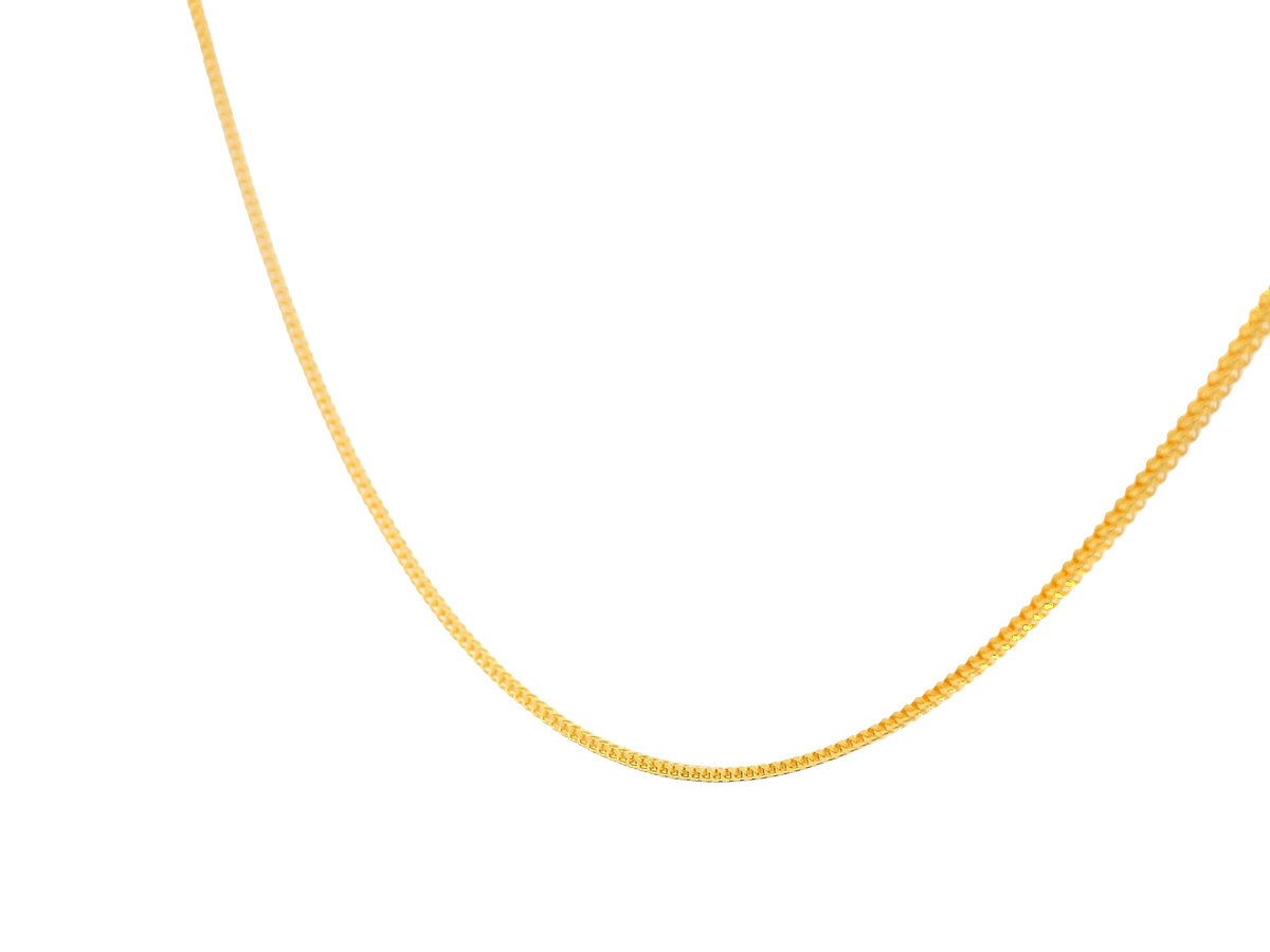 Description: This lightweight and elegant 22K Yellow Gold Chain is perfect for subtle sophistication. Weighing just 5.7 grams and measuring 18 inches in length, it features a polished yellow gold finish that shines effortlessly. A secure lobster lock provides ease of wear, making this chain ideal for layering with pendants or wearing solo as a delicate everyday accessory.