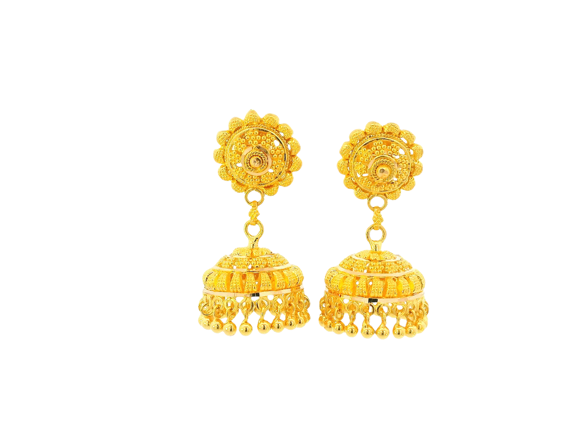 Description:Crafted from pure 22K yellow gold, these hanging earrings feature a radiant polished finish that enhances their luxurious appeal. Weighing 9.2 grams, they strike a perfect balance between statement elegance and wearability. Designed with a secure screw back post, they ensure comfort and lasting hold throughout the day or evening.