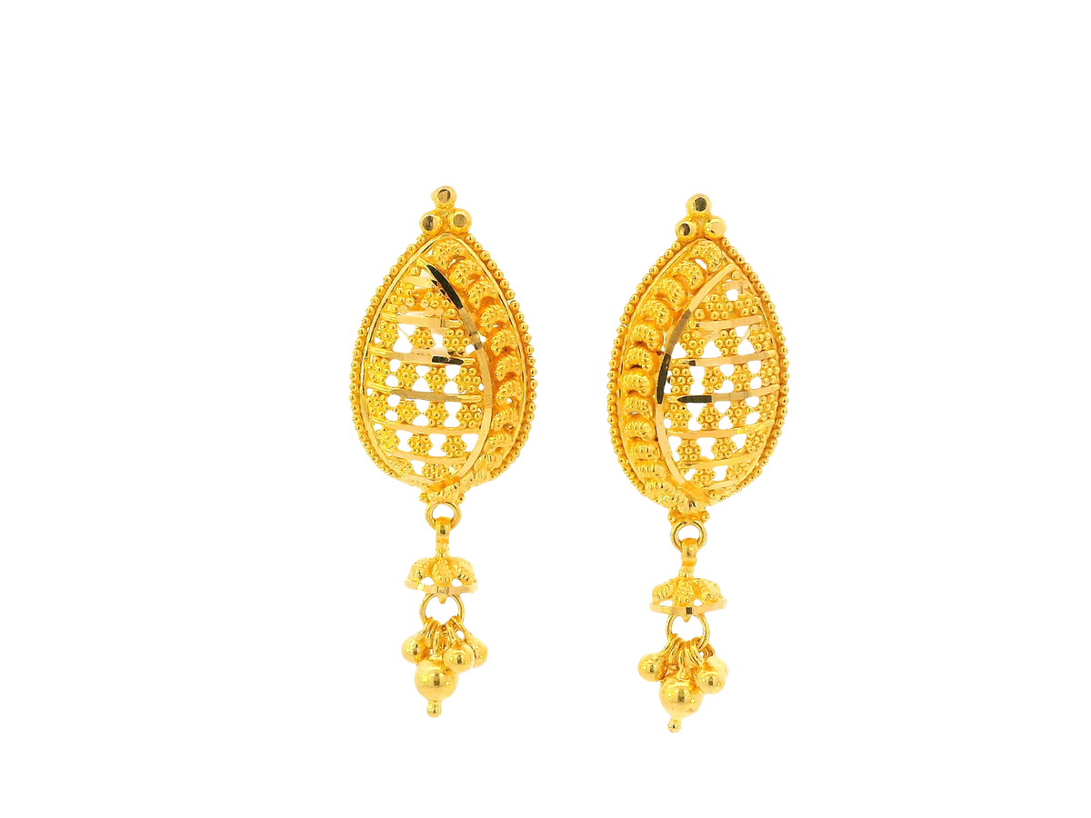 Description:Elegant and timeless, these 22K Yellow Gold Hanging Earrings are crafted with precision to exude refined sophistication. Weighing 7.4 grams, they offer a lightweight yet premium feel, perfect for daily wear or special occasions. The rich polished yellow gold finish enhances their warm tone, while the secure screw-back post ensures comfort and confidence with every wear.