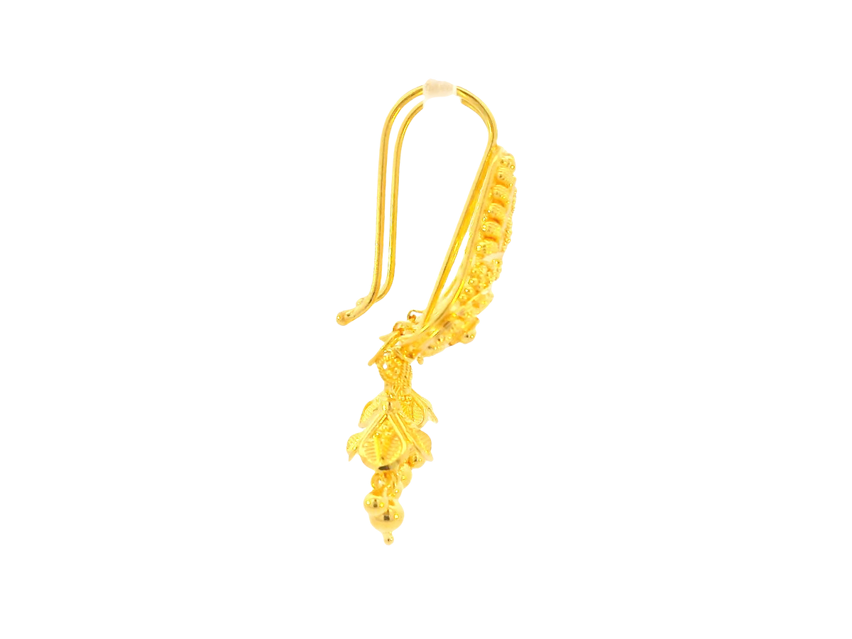 Description:Crafted with elegance in mind, these 22K Yellow Gold Hanging Earrings offer a striking balance of luxury and grace. Weighing 5.8 grams and finished in polished yellow gold, the design features a classic U-back closure for secure wear. Their versatile silhouette makes them suitable for both traditional and modern styling.