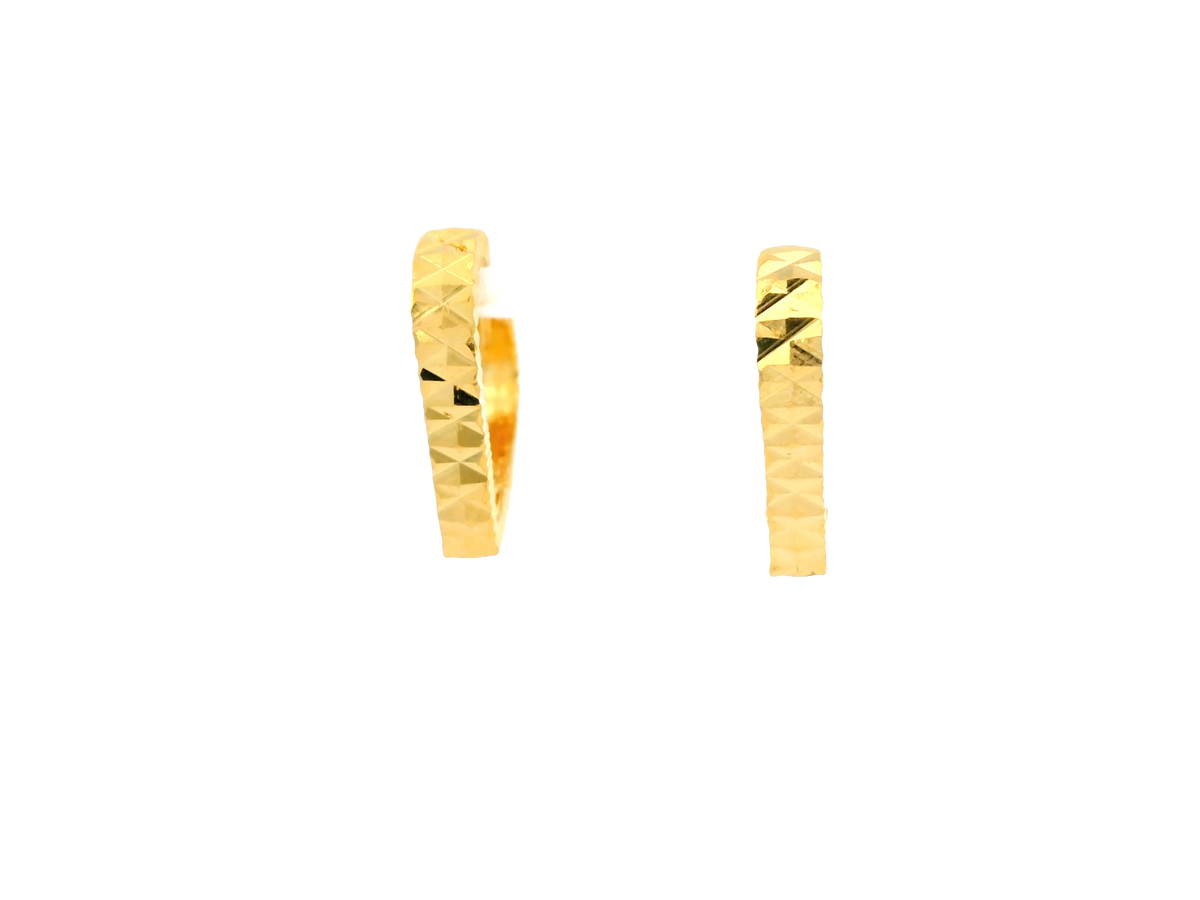 Description:These 22K yellow gold hoop earrings feature a sleek, polished finish that gives them a classic and elegant shine. Weighing 3.3 grams, they are lightweight and comfortable—perfect for everyday wear while still offering a touch of luxury. Their timeless hoop design makes them easy to pair with any outfit, whether casual or dressy. A subtle yet beautiful addition to any jewelry collection. Specifications: Gold Purity: 22K Gold Weight: 3.3 grams Finish: Polished Yellow Gold Earring Style: Hoop Highlights: Lightweight 3.3g hoops for daily comfort and effortless style. Crafted from solid 22K gold for a rich, radiant shine. Polished finish enhances elegance and timeless appeal. A versatile classic, perfect for layering or wearing solo. Ideal for gifting or adding refined simplicity to your personal collection.