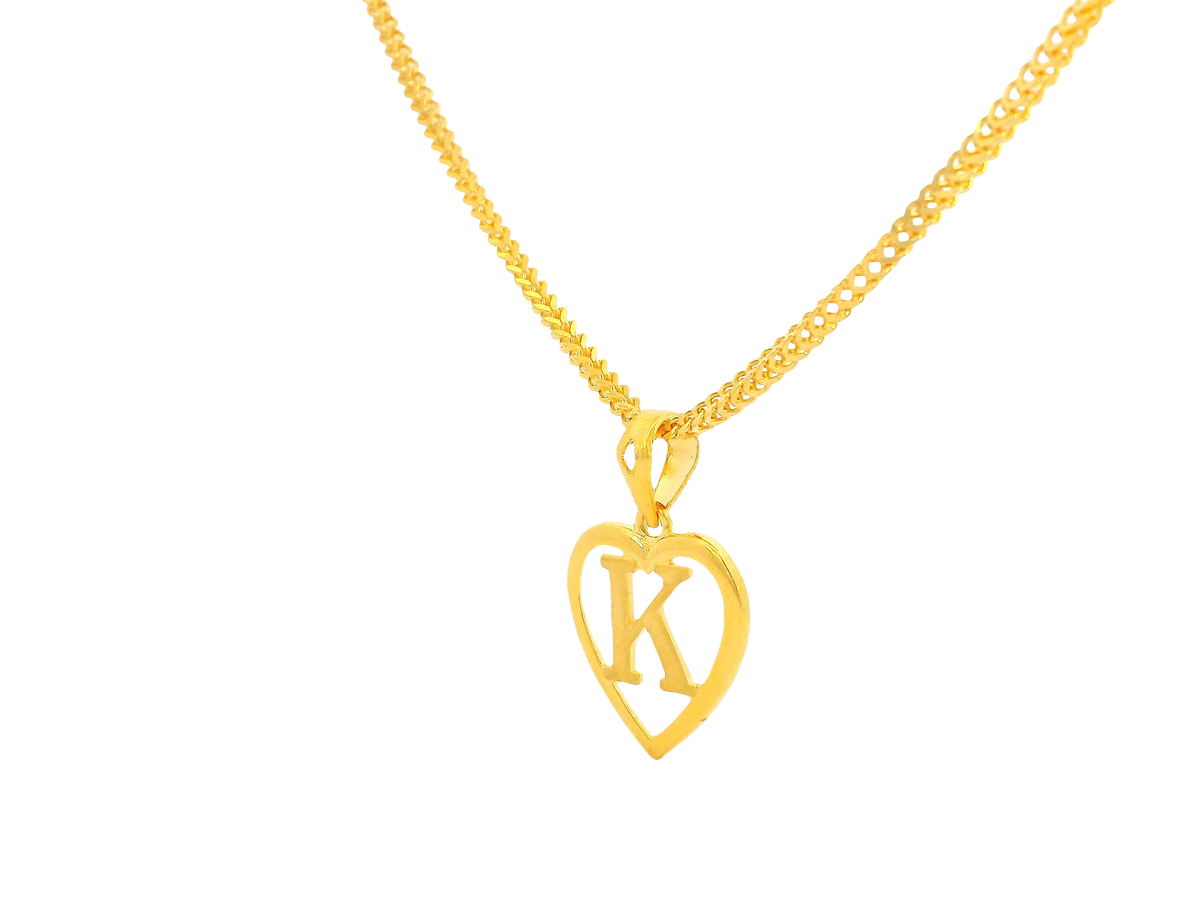Description:Crafted in radiant 22K yellow gold, this pendant features the initial “K” in a sleek polished finish. Weighing 1.6 grams, it is lightweight yet elegant, making it a meaningful accessory for personal wear or a thoughtful gift. Its minimalist design allows it to be paired effortlessly with chains of various styles, adding a personalized touch to any jewelry collection.