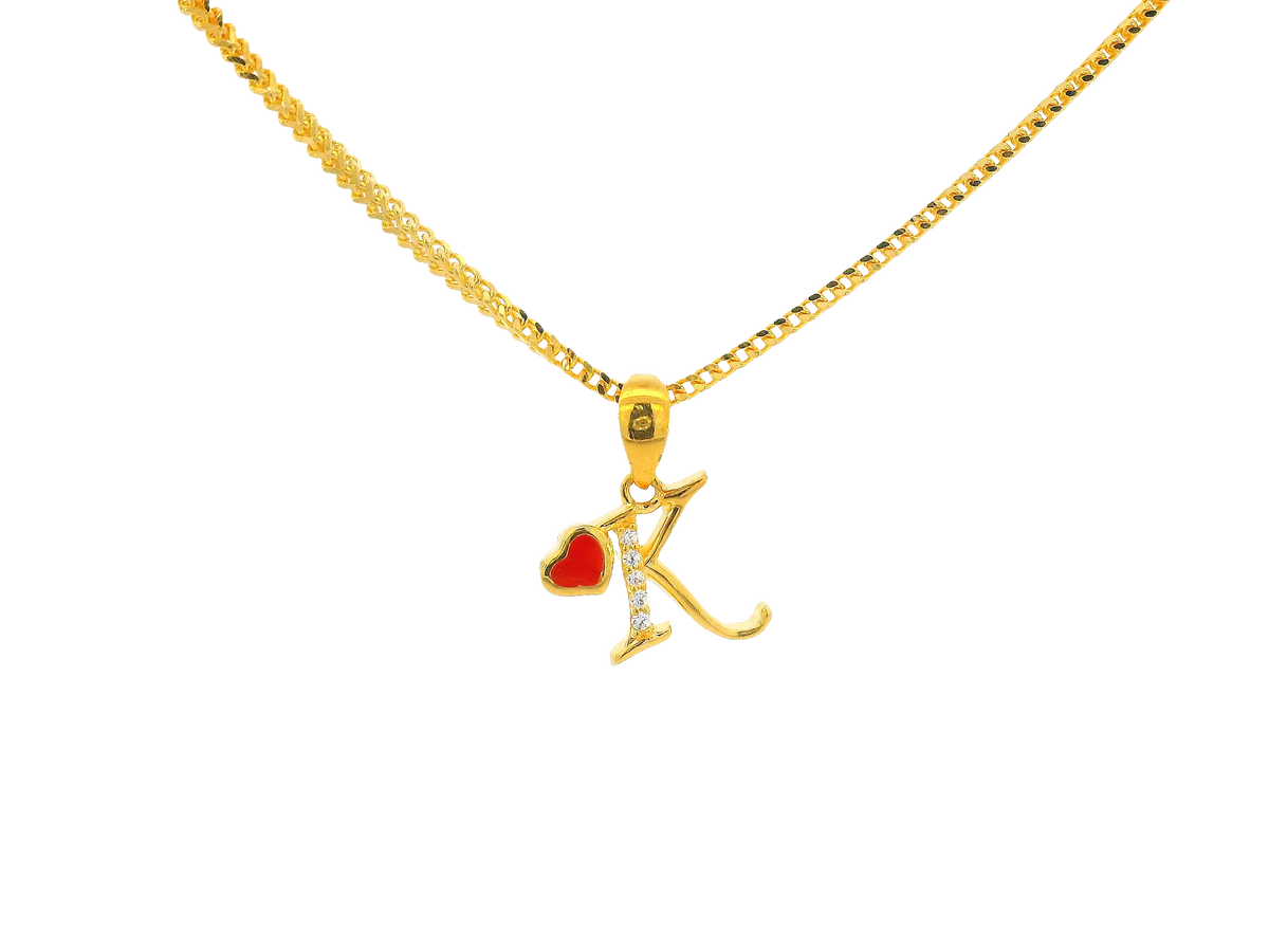 Description:This elegant 22K yellow gold pendant showcases the initial “K” in a radiant polished finish, accented with sparkling cubic zirconia stones for added brilliance. Weighing 1.6 grams, it is lightweight yet luxurious, making it perfect for everyday wear or as a meaningful gift. Its refined design pairs beautifully with various chain styles, adding both personalization and sparkle to any jewelry collection.