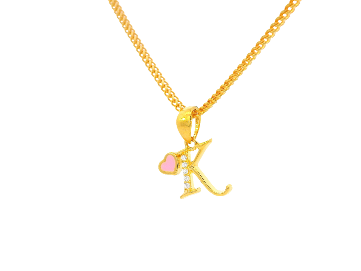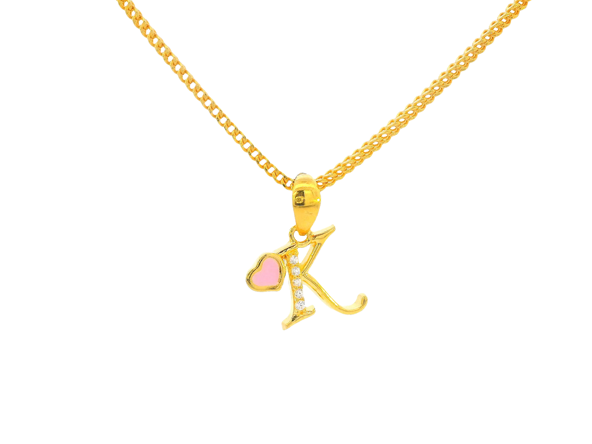 Description:Crafted in luminous 22K yellow gold, this pendant features the initial “K” highlighted with sparkling cubic zirconia stones. Weighing 1.6 grams, it is lightweight yet refined, making it a perfect accessory for everyday wear or a meaningful personalized gift. Its polished finish enhances the brilliance of the gold, while the cubic zirconia adds a touch of elegance and sparkle.