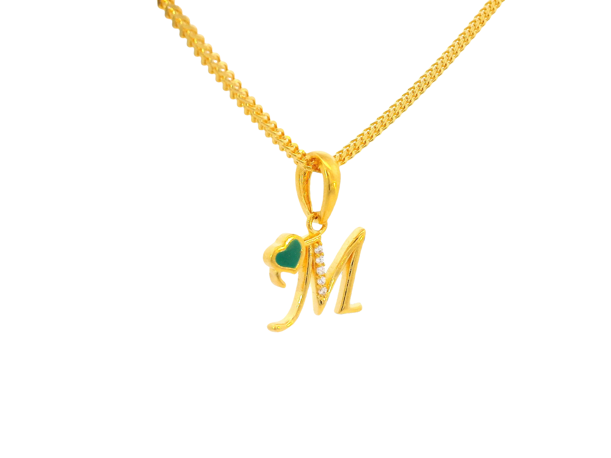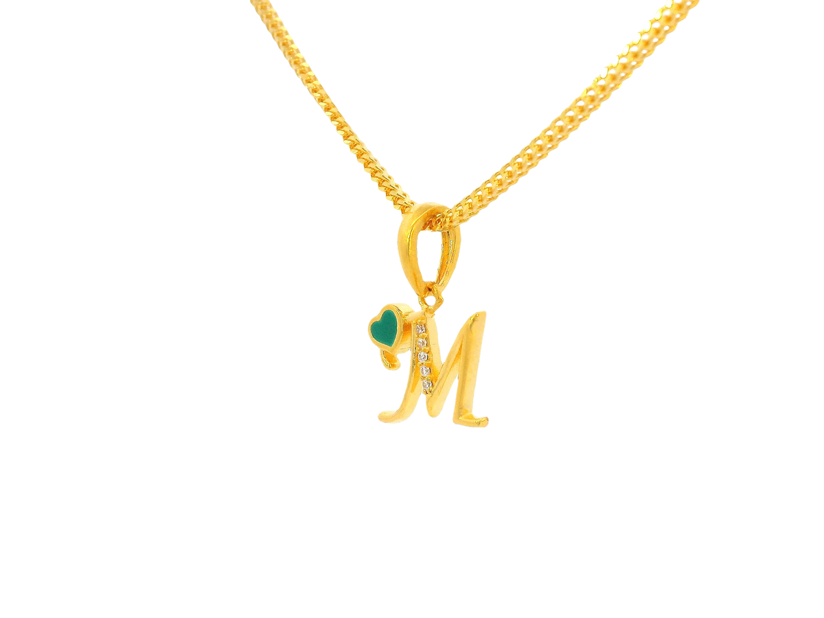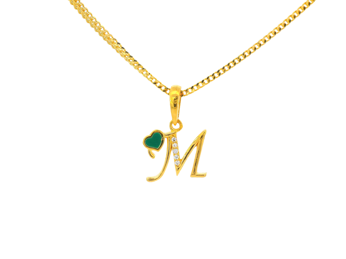 Description:This elegant 22K yellow gold pendant showcases the initial “M” adorned with sparkling cubic zirconia accents. Weighing 2.3 grams, it combines lightweight comfort with luxurious appeal, making it ideal for both everyday wear and as a thoughtful personalized gift. Its polished finish enhances the brilliance of the gold, while the cubic zirconia adds a touch of sparkle and refinement.