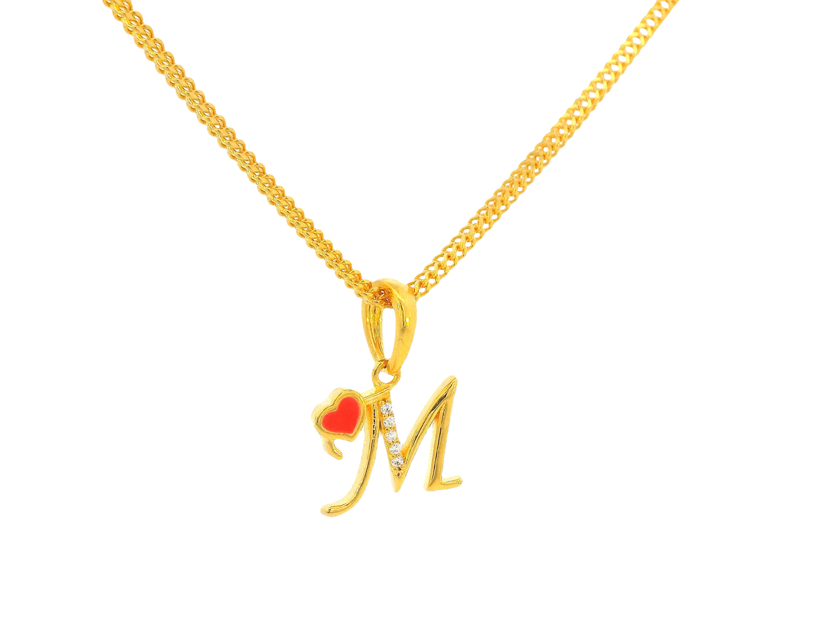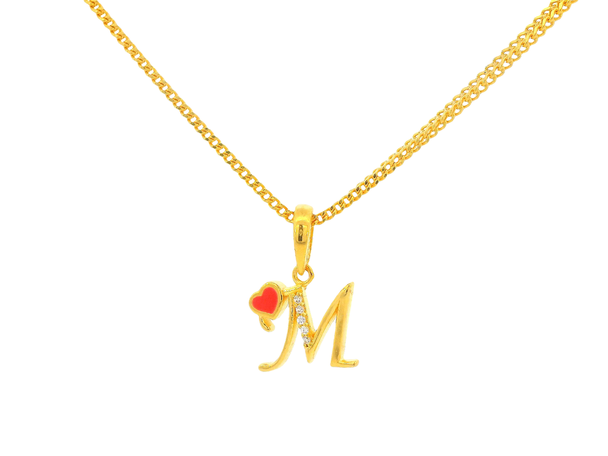 Description:Crafted in luminous 22K yellow gold, this pendant features the initial “M” highlighted with sparkling cubic zirconia accents. Weighing 2.3 grams, it offers a lightweight yet elegant presence, perfect for daily wear or as a personalized gift. The polished finish enhances the brilliance of the gold, while the cubic zirconia adds a refined touch of sparkle.