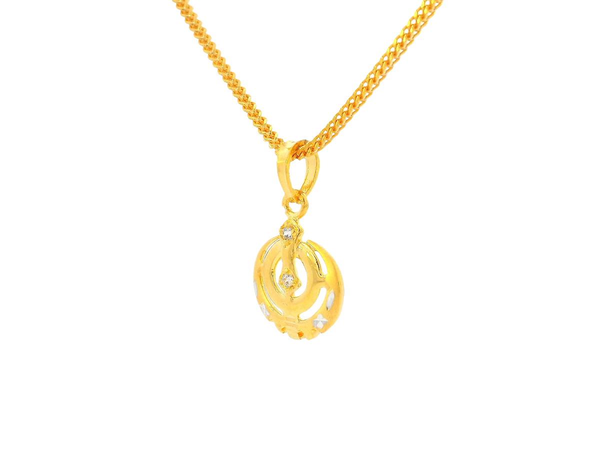 Description:This compact Khanda pendant is crafted from solid 22K yellow gold, embodying strength and spirituality in a timeless symbol. Measuring 1 inch in length and weighing 2.2 grams, it features sparkling cubic zirconia stones that accentuate its form with a modern touch. Ideal for everyday spiritual wear or as a meaningful gift, this pendant blends traditional reverence with fine craftsmanship.