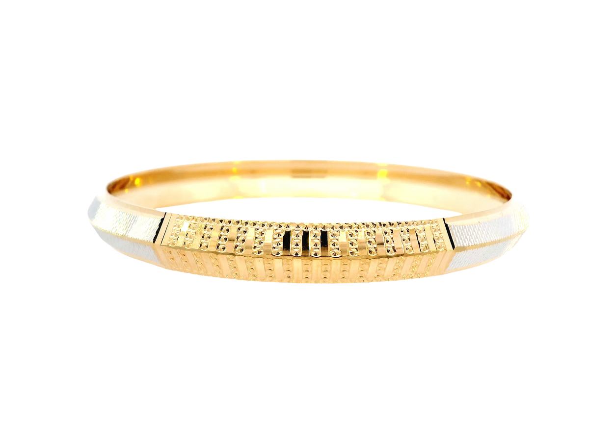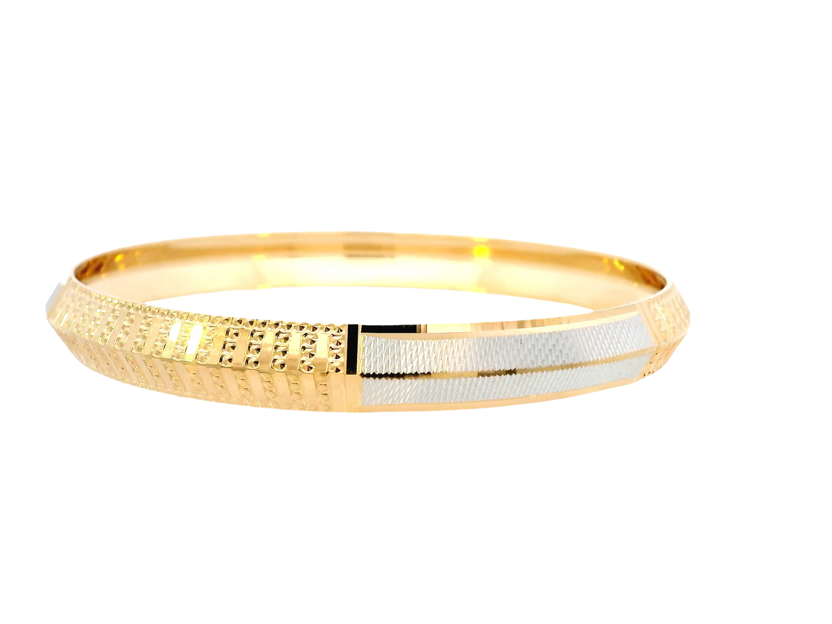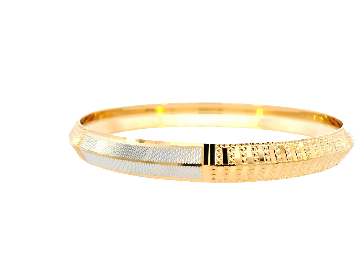 Description:This premium 22K Men’s Karra features a refined two-tone finish, blending yellow and white gold for a sophisticated and distinctive look. Weighing 32.3 grams, it carries a strong, confident presence while remaining comfortable for everyday wear. The polished finish enhances the shine of both gold tones, and the 8.05mm width strikes the perfect balance between bold style and elegant simplicity. Designed in size 2.12, this karra represents strength, culture, and timeless craftsmanship.